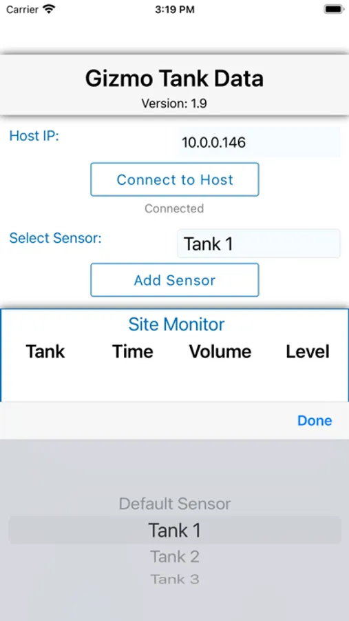 The Massa Sensor Data app enables users to view tank information from the Gizmo Sensor. It reads live data from multiple Gizmo Sensors.