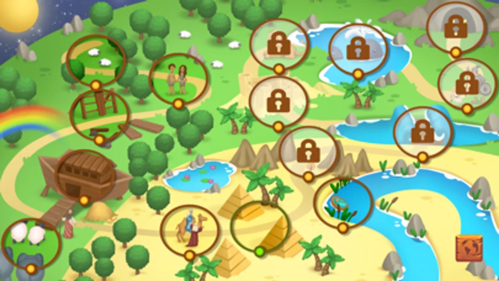 This app does not teach about the Bible, it just uses the context, characters and biblical figures from the Old Testament to help teach children about shapes and colors. The intention with the use of biblical characters is to arouse children's curiosity about such characters, with parents being responsible for teaching their children in the best possible way about these characters.