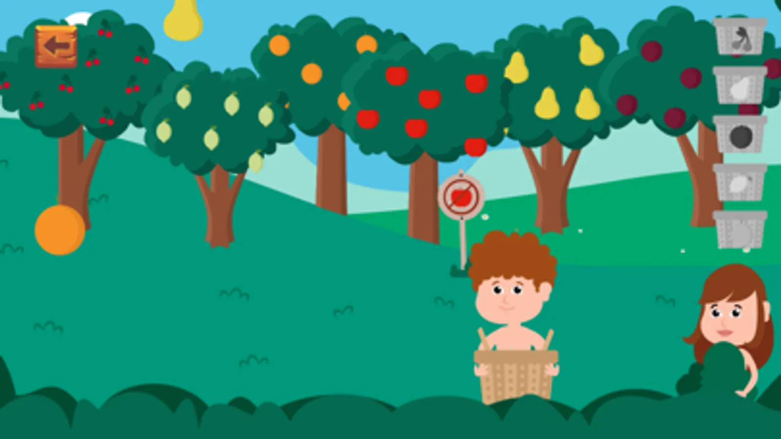 Adam and Eve: harvest the fruits that fall to develop visual perception and visual and manual coordination.