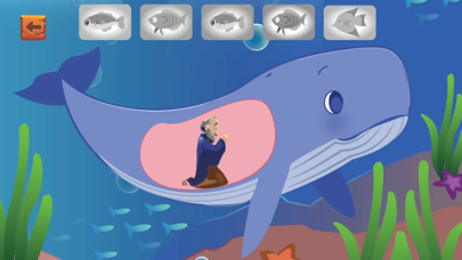 Jonah and the whale: take items by type to develop eye and hand coordination.