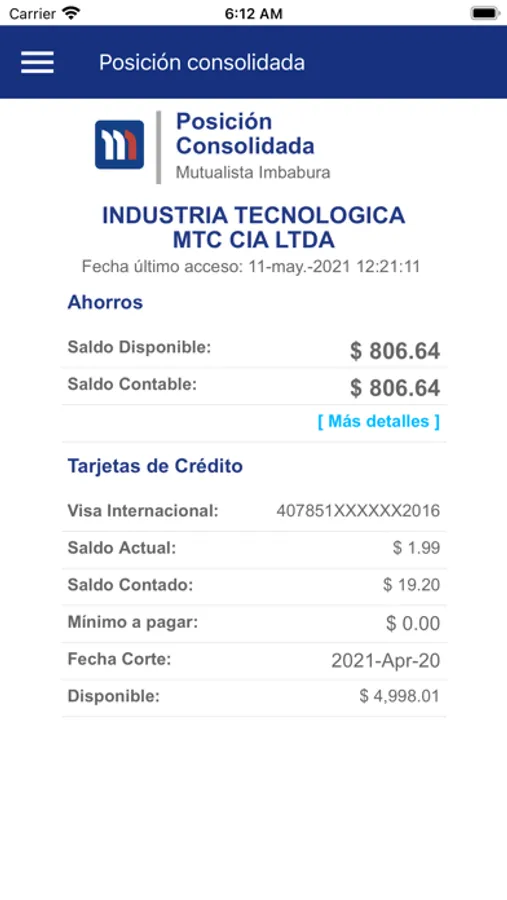 - Saldo de préstamos, valor y fecha del próximo pago.