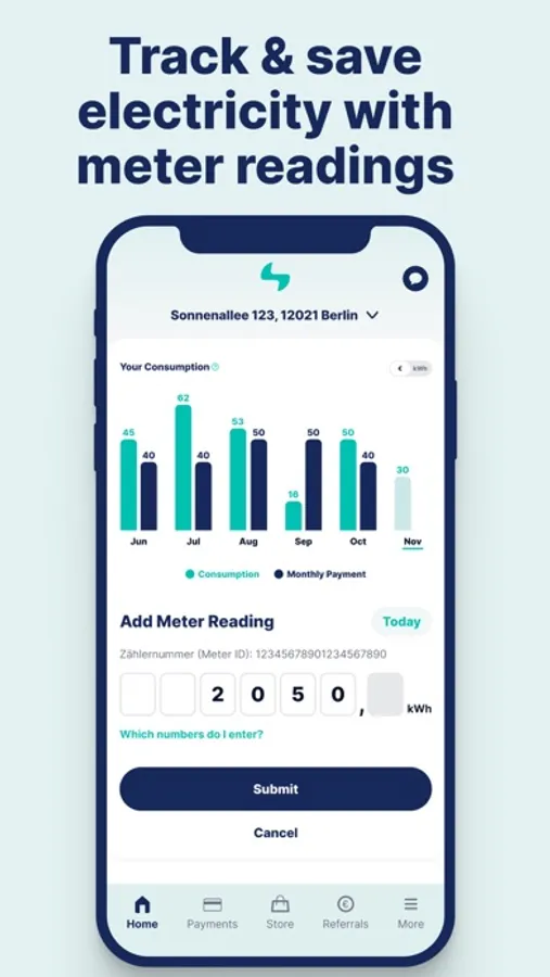 Use our app to understand your electricity usage compared to your monthly payments. Keep it updated by regularly adding your meter readings.
