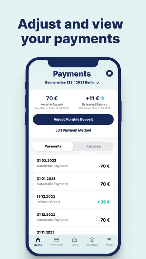 Experienced a surge in power usage this month? Fine-tune your monthly deposit directly within the app, steering clear of any end-of-year additional charges. Browse through all your invoices, payments, and customize your payment method – all under one roof.