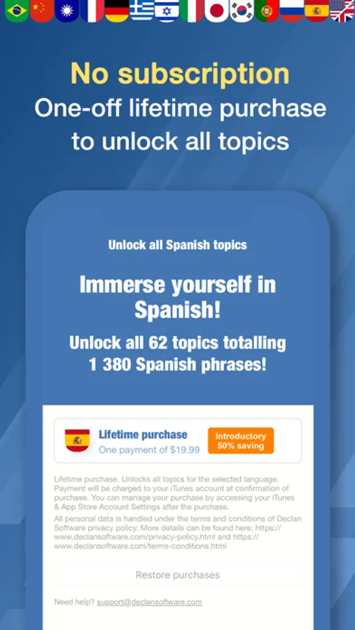 The core theoretical principle employed by 'Phrases' in facilitating adult language learning is 'immersive exposure'. Immersive exposure is the key to effective language learning. It's a proven method called 'contextual immersion'. The app facilitates immersion through reiteration, repetition, memorisation and re-enforcement of over a thousand commonly used colloquial phrases - all with native speaker audio and contextual notes.