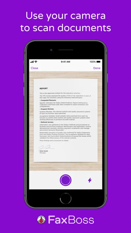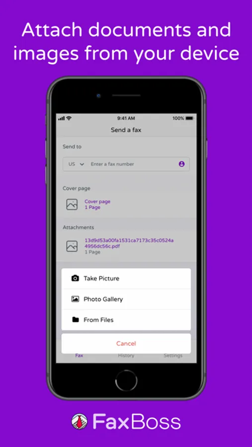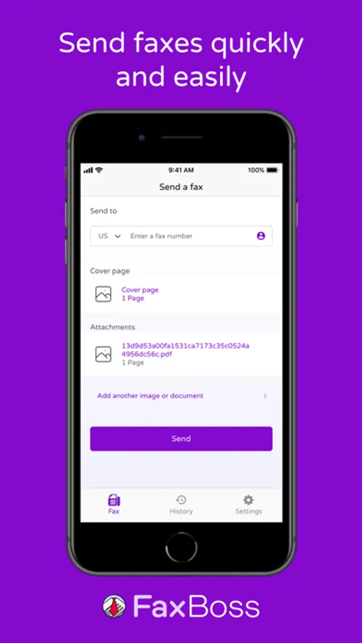 Fax like a Boss from your phone. Take a photo or upload your own docs, click Send and you're done. Send faxes to physical fax machines or other virtual fax services. Save on yearly plans.