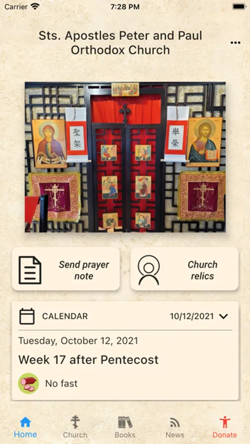 This app contains various information about St. Peter and Paul Orthodox Church in Hong Kong, and also makes it possible for users to send requests for prayers (commemoration of living and departed) and make donations.