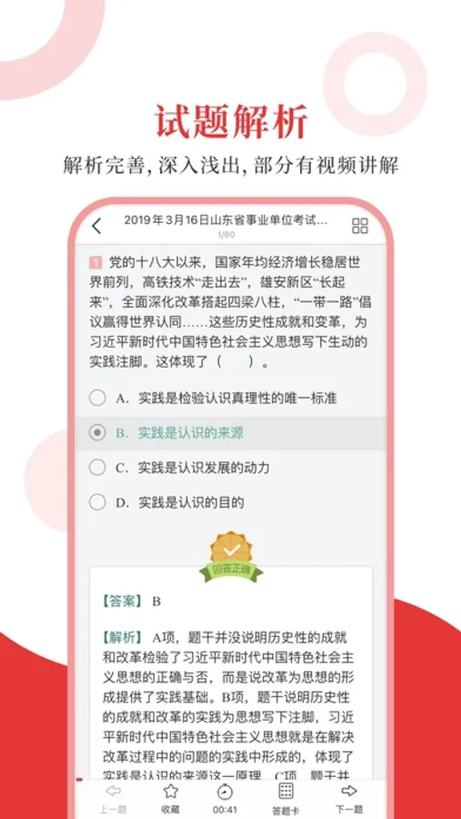 专为事业单位招聘考试精心准备的考试配套题库,每一道试题都有答案解析,为考试提供了充分的复习准备,可随时随地学习练习,支持手机、平板多端同时使用。