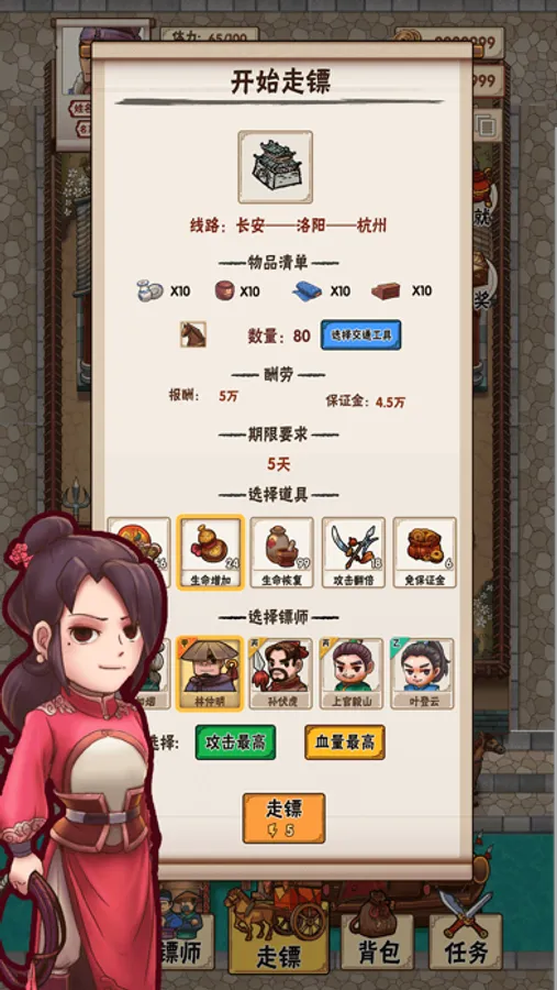 游戏中,你扮演一名镖头,建设镖局,招募镖师,训练镖师,走镖,最真实再现古代镖局从经营到走镖的完整过程。