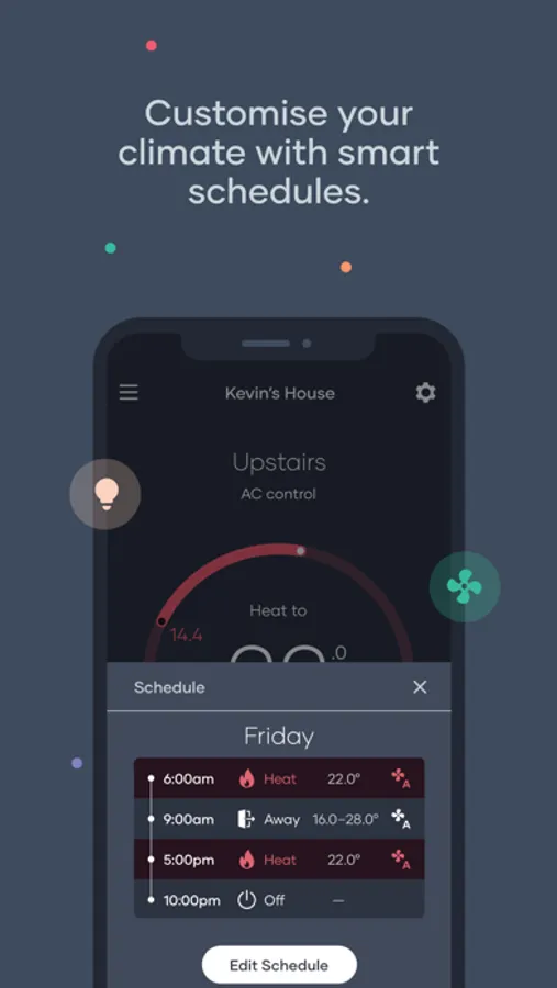 • Schedule the Hub to automatically set the system mode, fan option, and temperature at specific times throughout the day