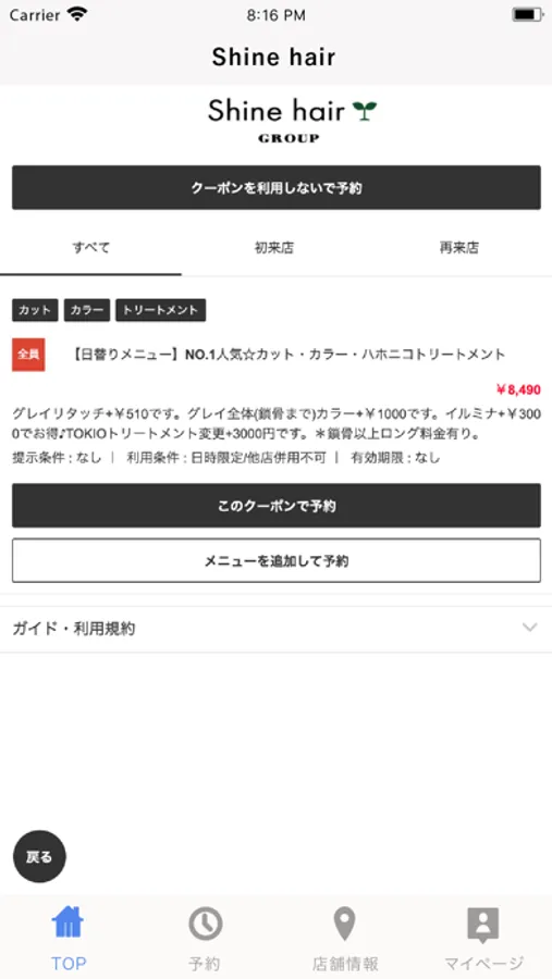 お得なクーポンが配信されます。ネット予約時にクーポン利用での予約も可能なので来店時もスムーズに施術頂けます。