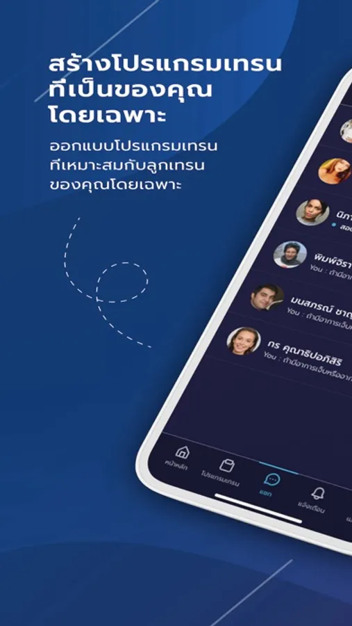 เราจึงออกแบบแอปพลิเคชันที่ช่วยให้คุณและลูกเทรนของคุณใกล้ชิดกันมากขึ้นด้วยระบบแชทและวีดิโอคอล ช่วยเพิ่มประสิทธิภารเทรนด้วยระบบจัดตารางการออกกำลังกาย และระบบรวบรวมสถิติการเทรน