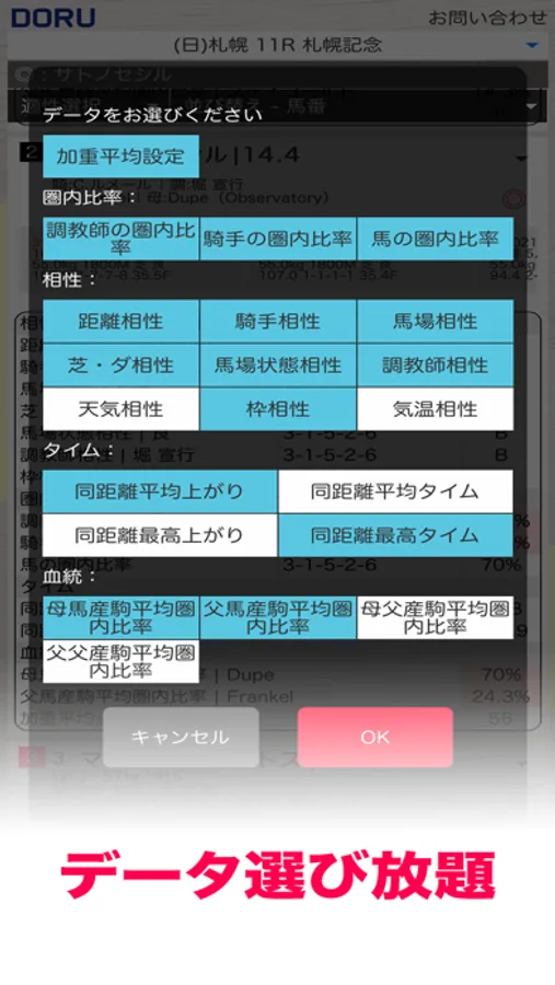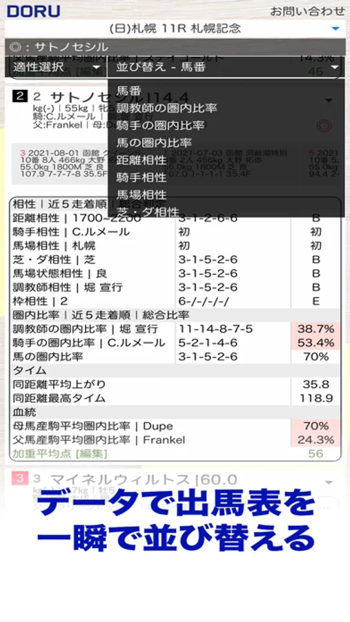 枠適正、馬場状態適性など、レアな競馬データをリアルタイムで見ることができます。