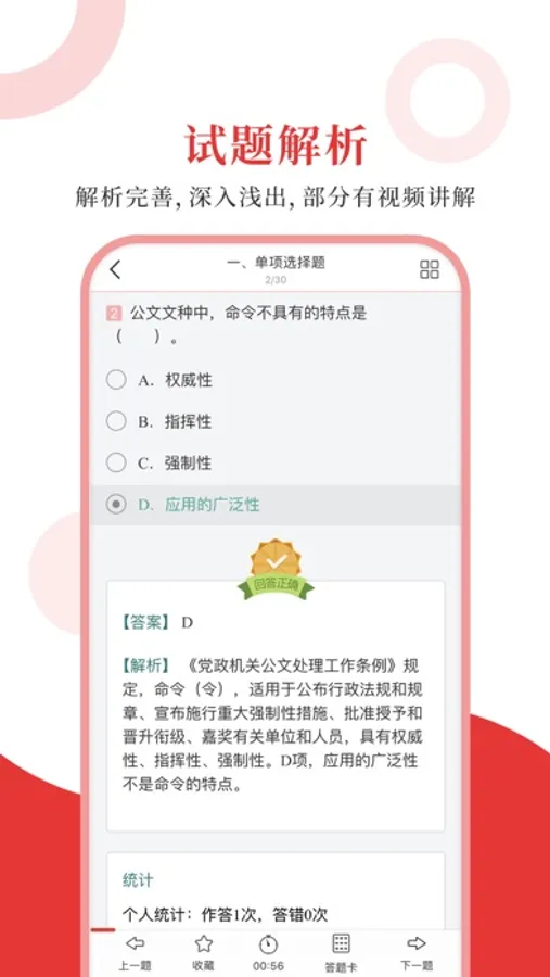 专为选调生考试精心准备的考试配套题库,每一道试题都有答案解析,为考试提供了充分的复习准备,可随时随地学习练习,支持手机、平板多端同时使用。