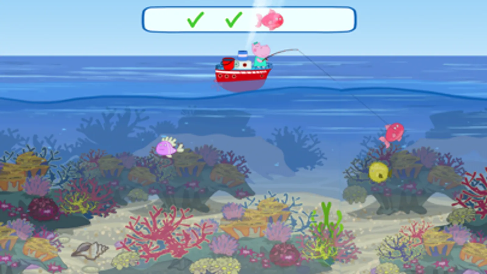 Fishing is such an interesting and exciting task, that there are a lot of simulators dedicated to this topic. But an ordinary simulator can't have such an excitement, which you get while fishing in real life. And we have a solution! Exciting Hippo games are renewed with an astonishing novelty! Today Hippo goes fishing with a boat in the huge storming ocean! You could never forget this fishing.
