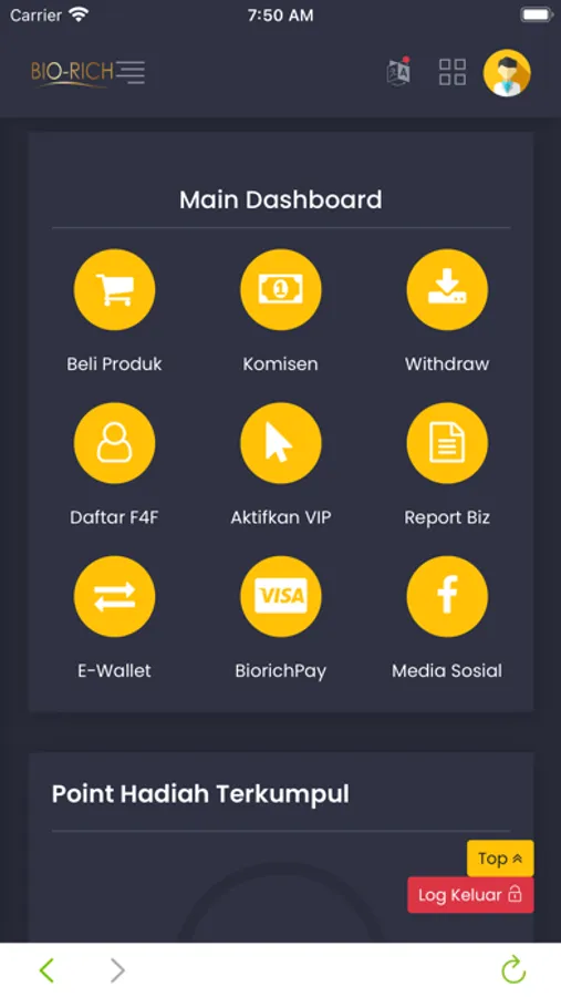 Aplikasi Bisnes Biorich. Khas untuk pengguna Biorich serta Outlet Online untuk menguruskan perniagaan ini melalui platform mobile app. Segalanya di hujung jari anda.