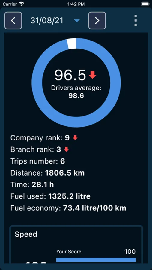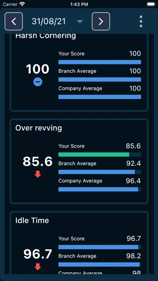 The driver can see how their performance has changed from the last period, and drill down to see what driving behaviour is affecting their scores.