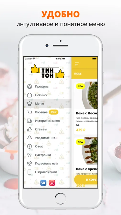 Приложение ТинТон — это удобный способ заказа еды на дом или в офис! Мы готовим наши блюда из качественных свежих ингредиентов и доставляем еду в любую точку города!