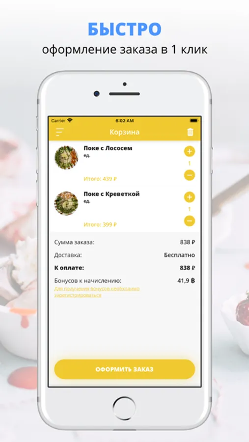 Скачивайте наше приложение, оформляйте заказ и наслаждайтесь любимой едой, где бы Вы ни были! Приятного аппетита!