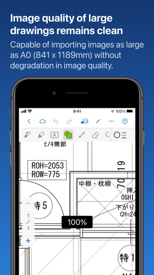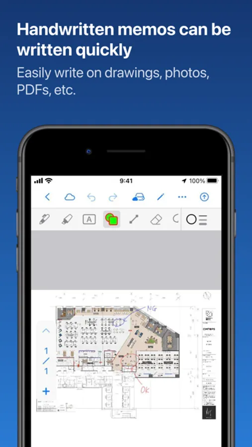 You can freely write handwritten notes on PDF drawings (which can be trimmed before use), photos, documents, and i-Reporter forms.