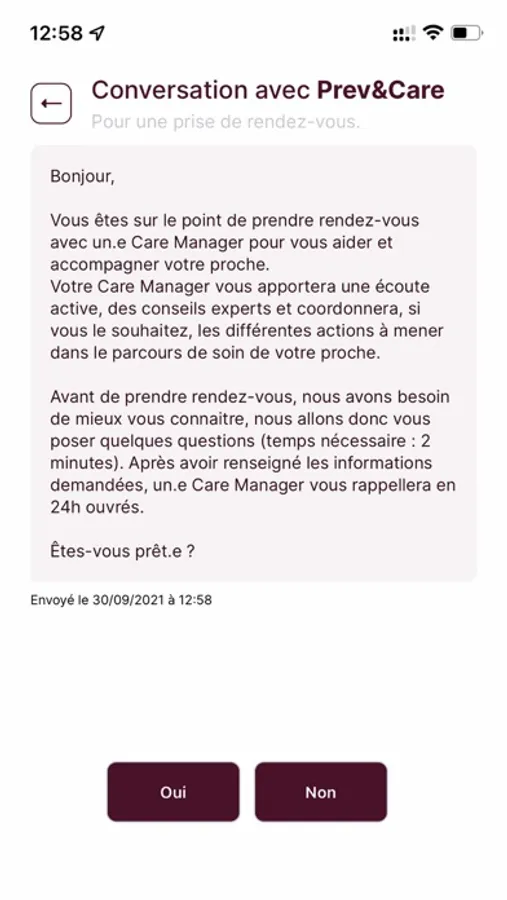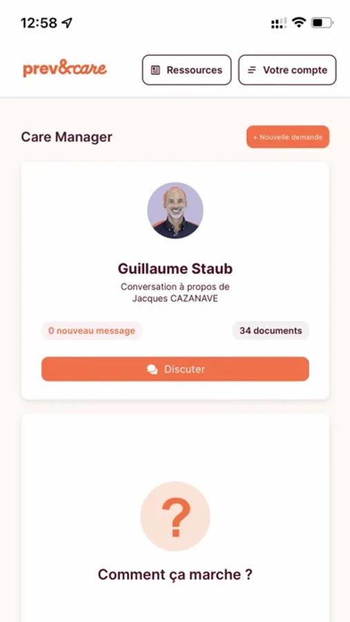 Elle vous permet également d'également d'échanger en direct avec votre Care Manager via la messagerie.