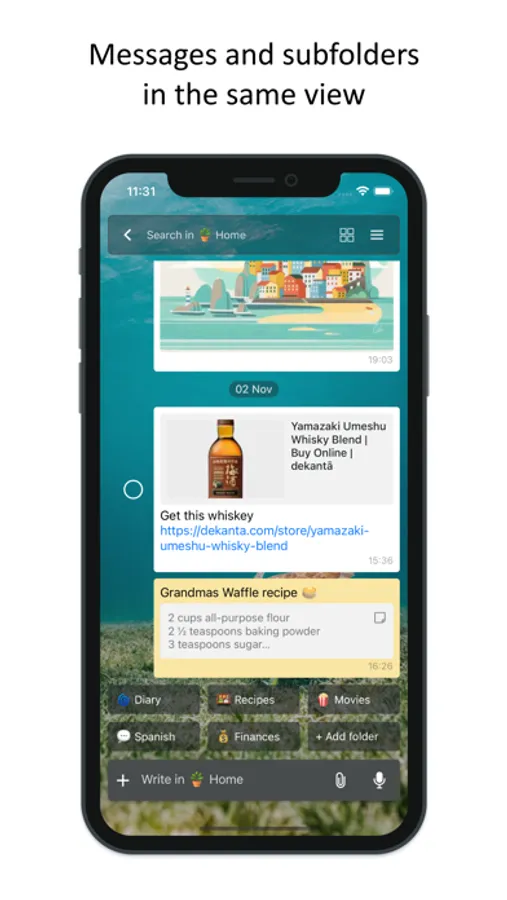 You’re sending yourself notes as messages. Imagine Telegram or WhatsApp but only for yourself.
