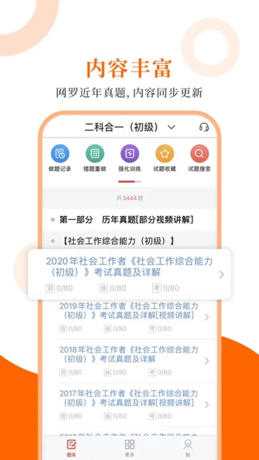 ②题量大,多个刷题板块,历年真题、章节习题、模拟试题;