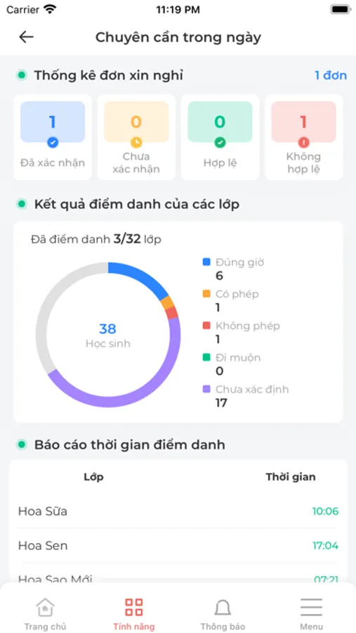 Theo dõi hoạt động của trường ngay trên thiết bị di động của Quản lý:
