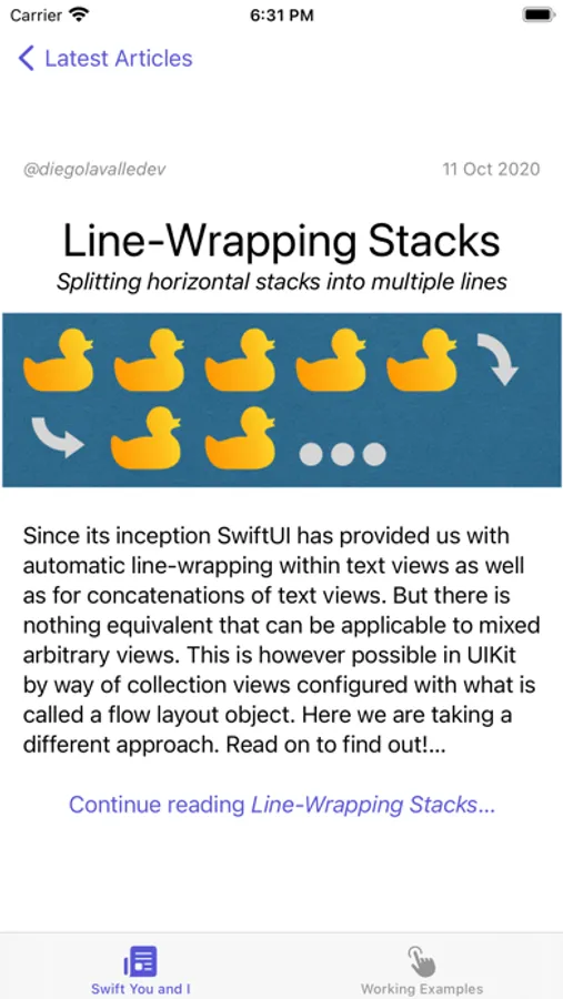 New articles and demos are added regularly so you'll never run out of things to learn. The Swift Programming language, SwiftUI and Combine framework are just *some* of the topics covered. Related and cross-over content is also featured.