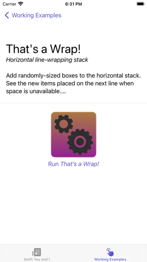 Thank you for trying out *WORKING EXAMPLES** and **SWIFT YOU AND I**!