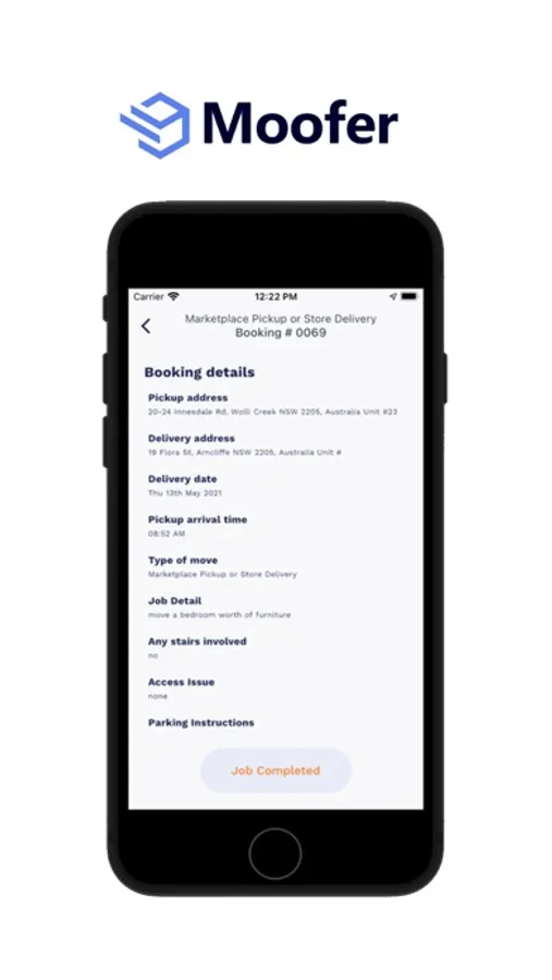 You will get status update within the app when the Moofer is on the way, when they arrived, when they successfully picked up the items and loaded up the truck, when they arrived at the destination and start unloading and when the job is completed.
