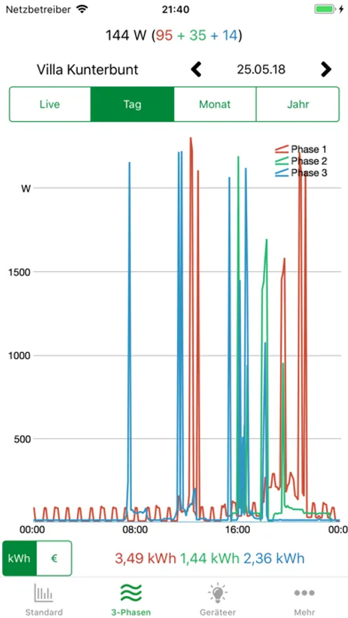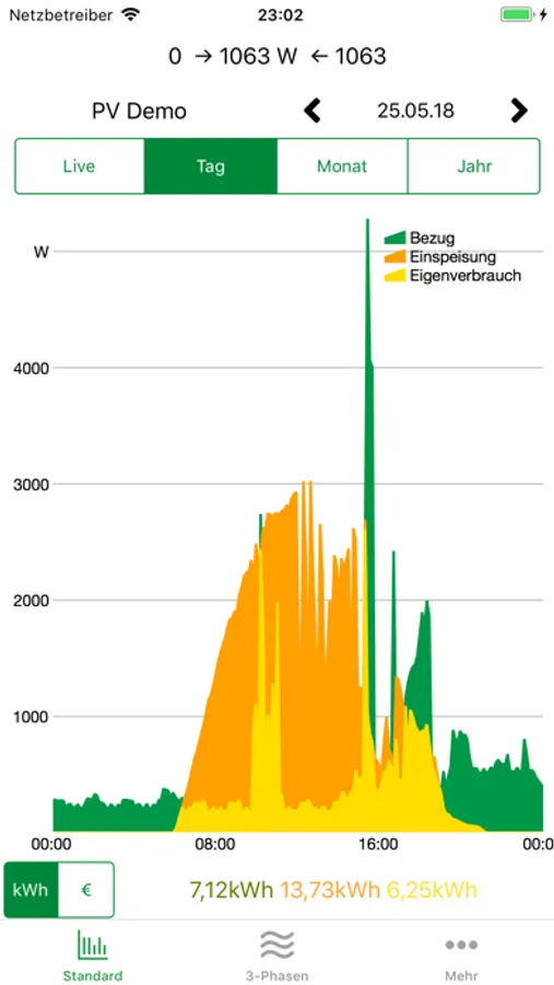 Überall und in Echtzeit. Die Tages-Ansicht zeigt Ihnen übersichtlich den Verlauf Ihres Verbrauchs an jedem beliebigen Tag. Durch die interaktive Zoom-Funktion werden beliebige Zoom-Funktion werden Details sichtbar.