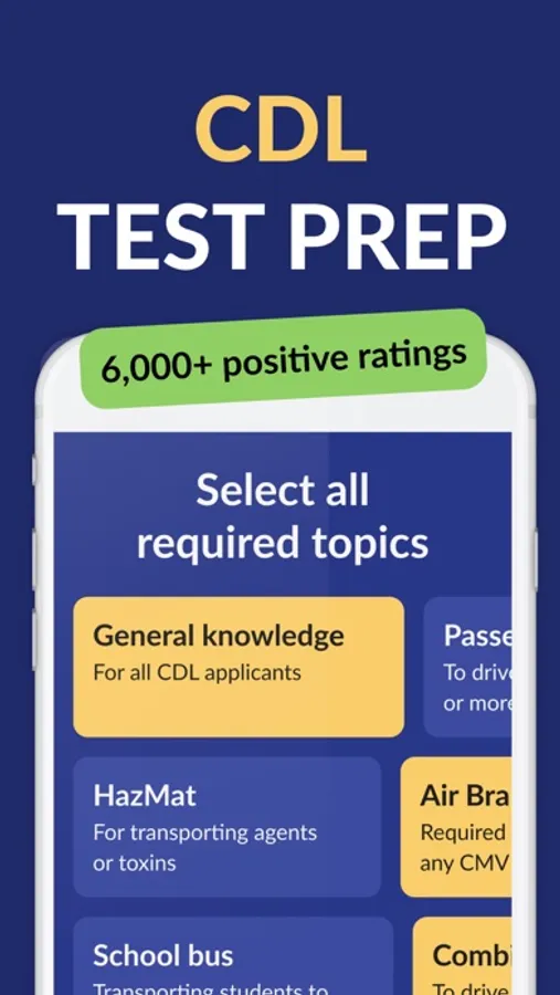 Depending on your state and required CDL category you are able to study these knowledge domains: