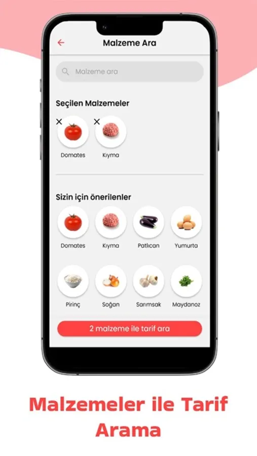 -Malzemeler ile arama yapabilme (Seçtiğiniz malzemelere uygun Yemek Tarifleri)
