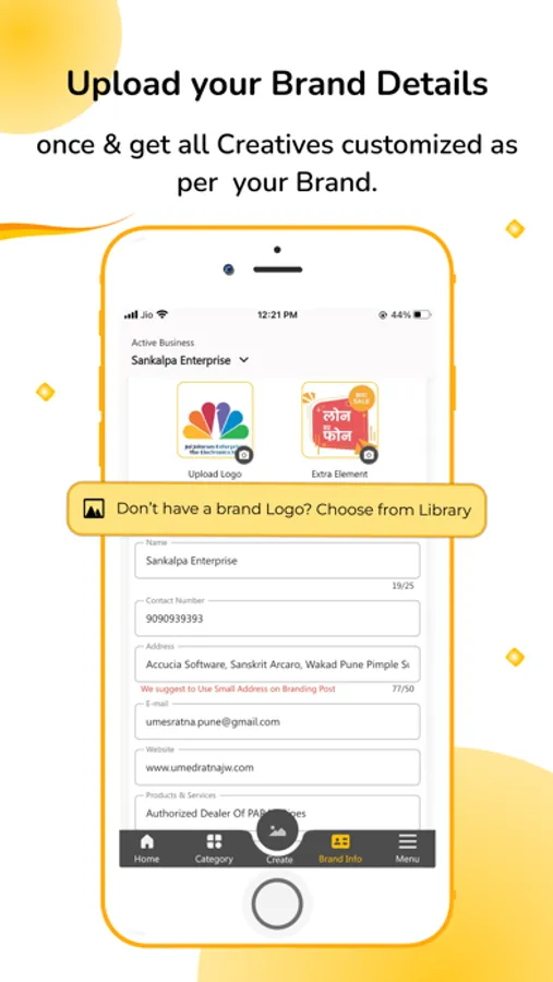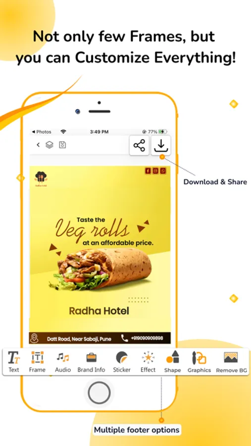 This enables you to generate and share the best of your business or personal custom branded social media posters, banners, videos for festivals, national & international days, trending events, business ads with your customers, team, audience, and network in a few clicks.