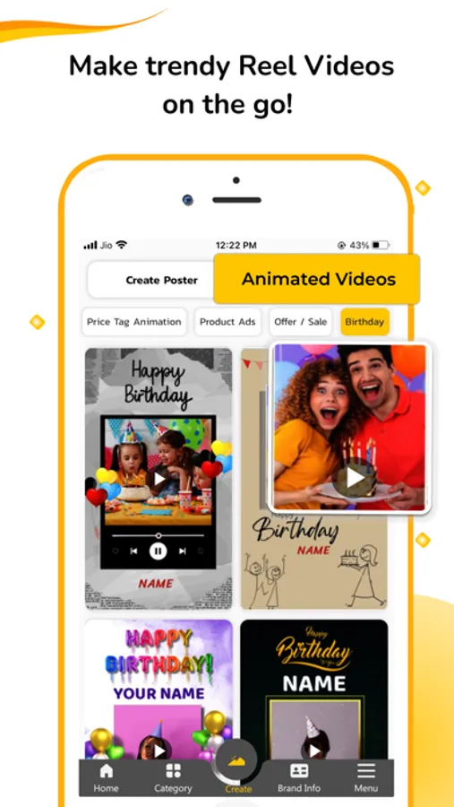 Create Festival, Days, Trending Events, And Even Your Business Advertise Posters, Banners, Creatives, and Videos For Your Brand In Single Click.