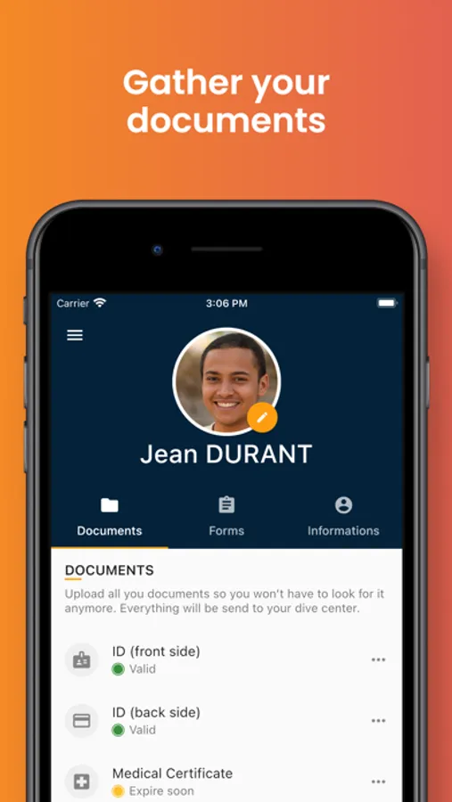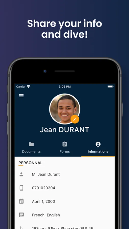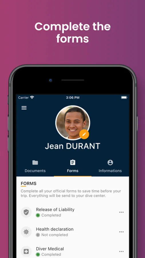 Upload, save and synchronize your diver informations for a easily welcome at your dive center.