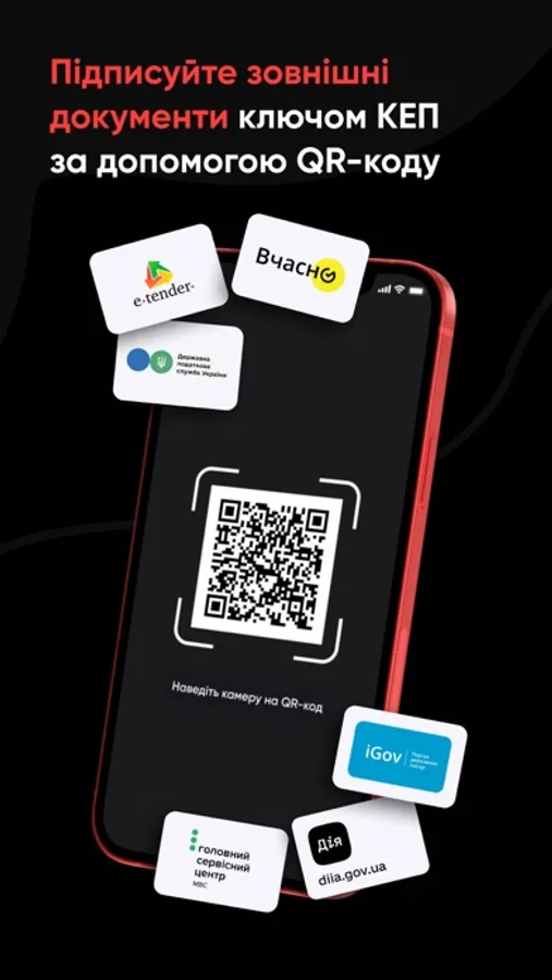- Підпис документів електронним ключем на зовнішніх платформах через зчитування QR-коду;