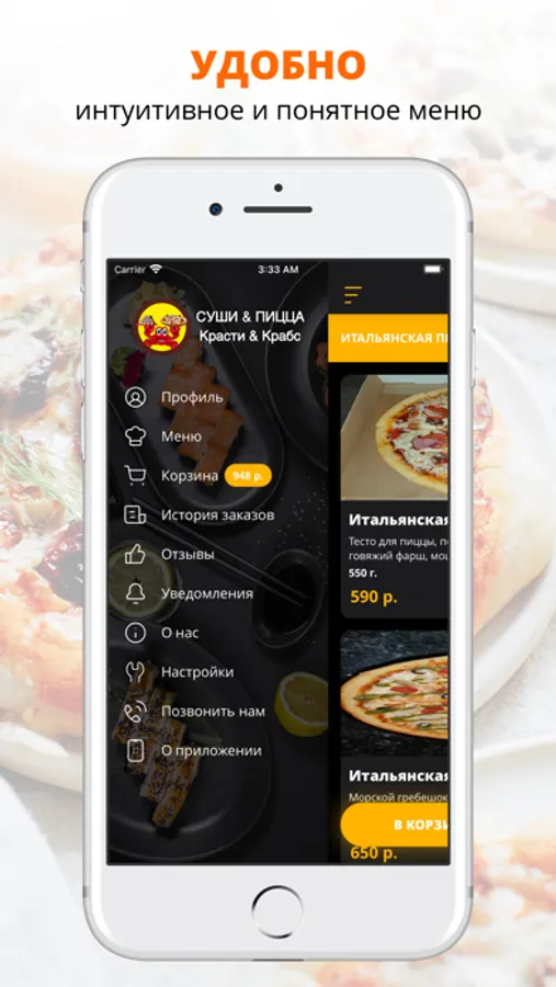 посмотреть меню и совершить онлайн-заказ,