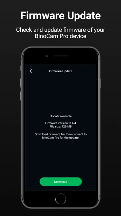 • Firmware update. Check and update the firmware of your BinoCam Pro device.