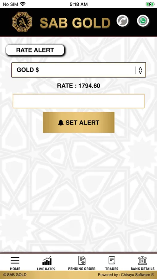 It also has the RATE ALERT facility to set the alerts at specific price and recieve notification when the the market price reaches the specified price level.
