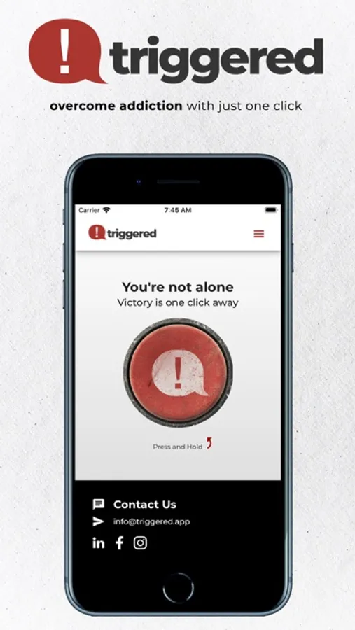 Do you or someone you know struggle with addictions? Don't do it alone! The Triggered™ app makes it easy to reach out for support and encouragement. With just one click, instantly notify your support group when you are feeling tempted. Find freedom and overcome addiction with Triggered™.