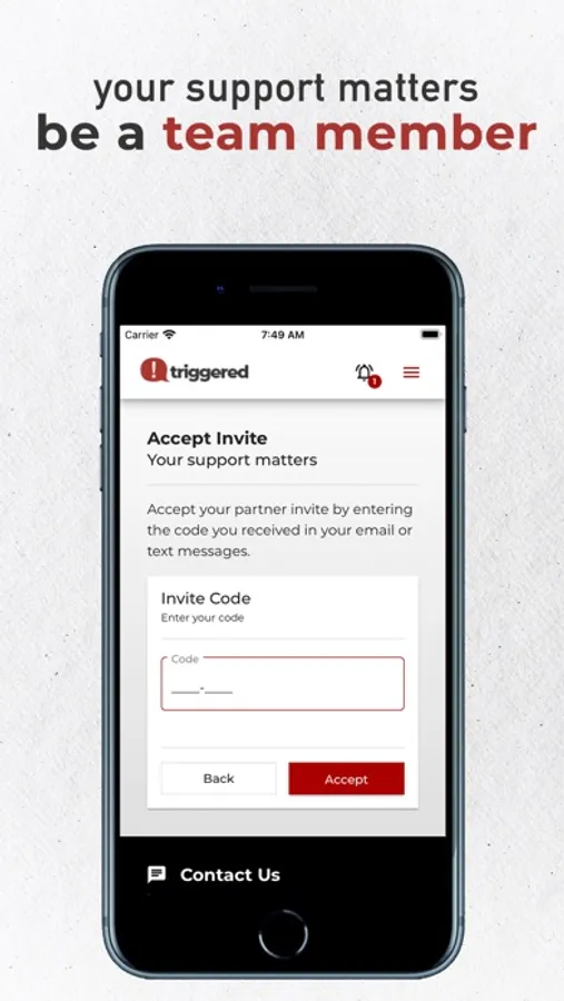If someone you know is struggling with addictions, let them know about the Triggered app and start making a difference today. As someone’s support partner, you will have access to their alerts in the Triggered app, with no subscription needed. You can respond to their alerts quickly with one click of a button. In addition to a quick response, we also help you be most effective by allowing you to send a custom text message from the app, dialing them from within the app or setting a reminder to reach out later when you are available. We want to help you as you make a difference.