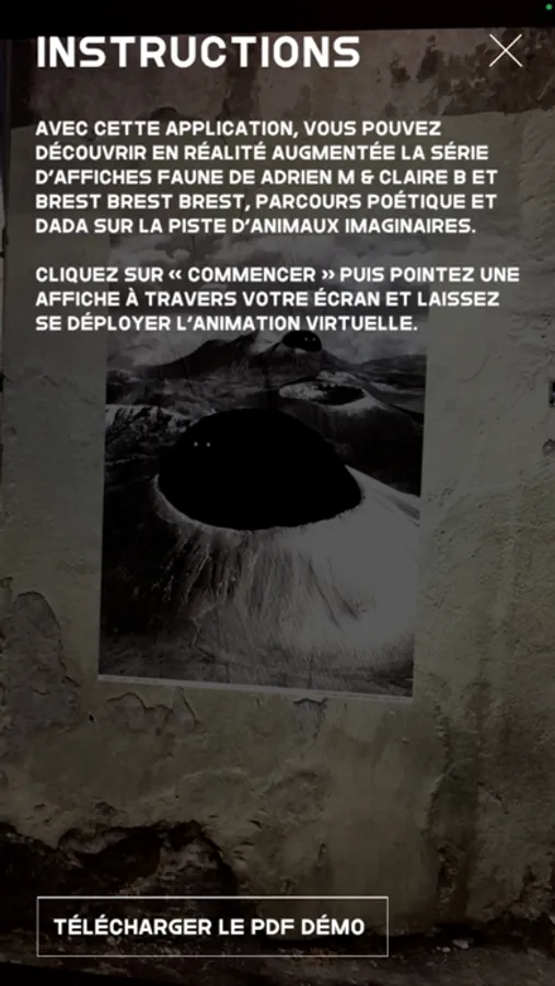 Cliquez sur « Commencer » puis pointez une des affiches à travers votre écran et laissez se déployer l’animation virtuelle.