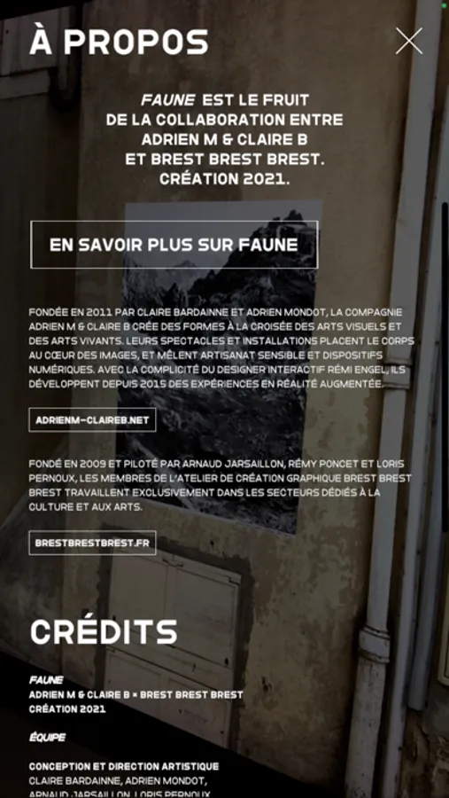 Avec cette application, vous pouvez découvrir en réalité augmentée la série d’affiches Faune, fruit de la collaboration entre Adrien M & Claire B et Brest Brest Brest (création 2021).