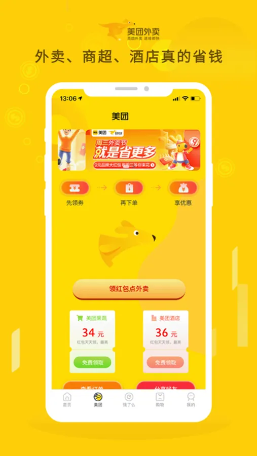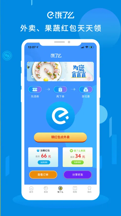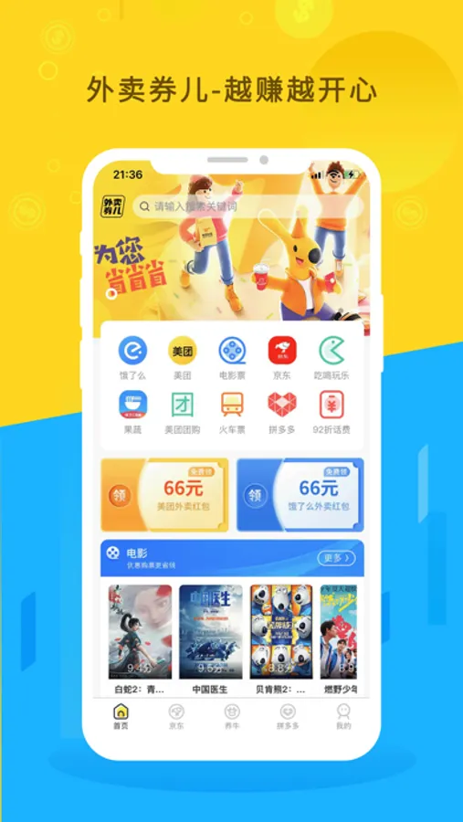 涵盖所有外卖渠道,每天都能领红包,顿顿都能省,吃的放心,省的开心。
