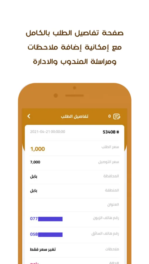 اشعارات ملاحظات الادارة , المندوب , العميل