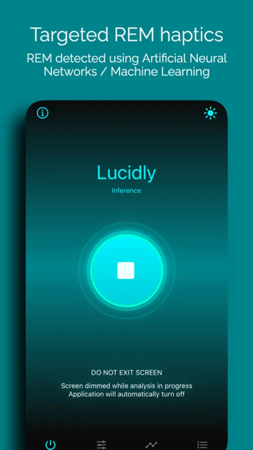 Lucidly will collect health readings while you are sleeping via the watch. The readings are evaluated using artificial intelligence to determine when you have entered rapid eye movement (REM) of your sleep cycle. When REM is detected, the watch will alert you by triggering haptic signals. Lucidly is the first and only application that specifically targets this phase of the sleep cycle using health readings, machine learning, and auto shut-off haptic signaling. The application can be used to support various lucid dreaming induction techniques, and is available in two modes: Inference (REM detection and alerts), and hypnagogic (periodic haptics for sleep entry).