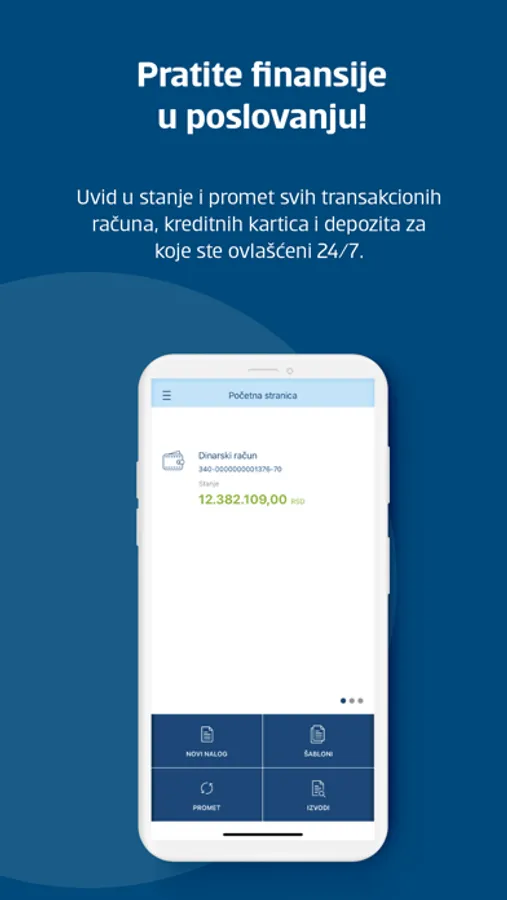 • Pregled izvršenih naloga: Brzo proverite istoriju transakcija i preuzmite izvod za vaše transakcione račune.