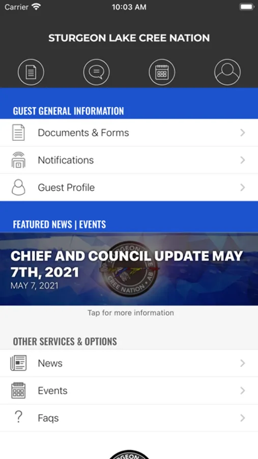 Receive up to the minute news/events, submit custom forms, gain access to important documents and receive communications directly from the Sturgeon Lake Cree Nation Office. The Sturgeon Lake Cree Nation application has put all of these functions into one easy to use package.