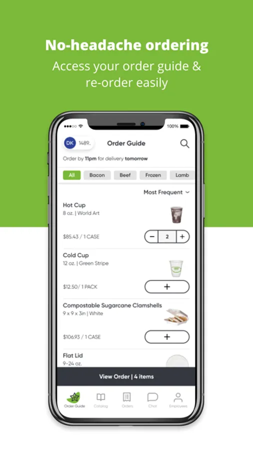 Our mobile app lets you search our complete product catalog, manage and update your ordering guide, and buy what you need at the moment you need it. It’s part of our commitment to giving you an ordering experience you’ll love.